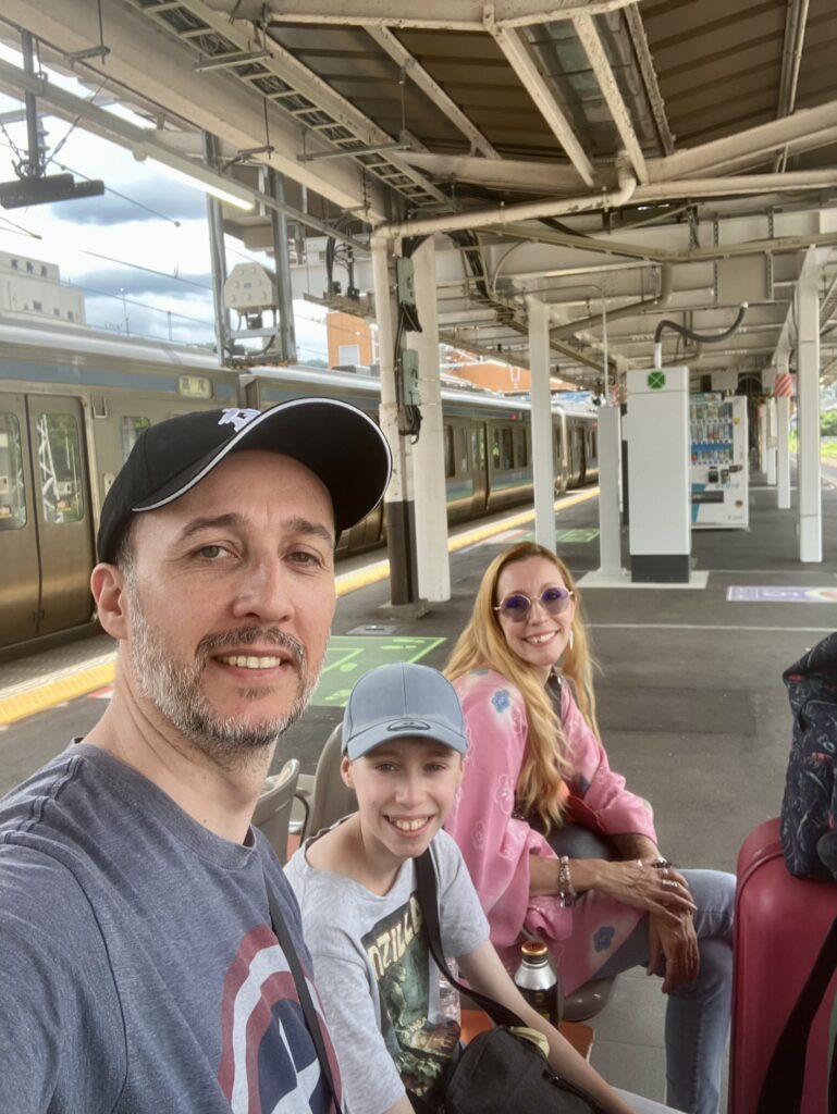 En un peu plus de deux heures, on passe des forêts paisibles aux premières tours de verre de Shinjuku. Tyler, le nez collé à la fenêtre, répète « Tokyo » comme un mantra. Il y est enfin. Il veut tout voir, tout faire. À la sortie de la gare, le choc est immédiat. La densité. Les enseignes. Le bruit. Les gens. Rien ne ressemble à Tokyo. On se fraie un chemin vers notre nouveau point d’ancrage, Fujiflats Shinjuku. Petit appartement simple mais bien placé, à deux pas de Shin-Okubo, quartier coréen vibrant et plein de surprises. On pose les sacs, on prend une grande inspiration, et on ressort aussitôt.