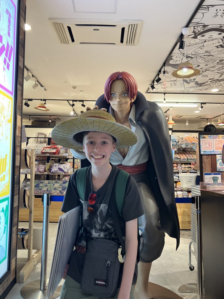 On décide de faire la route vers Shibuya à pied. Omotesando est l’avenue parfaite pour ça. De l’ombre, des vitrines élégantes, un Tokyo plus adulte, plus posé. On s’arrête chez KiddyLand. Cinq étages de tentations. Tyler repart avec une peluche Kirby, des stickers One Piece et tout pleins d’autres goodies de jeux divers et variés.