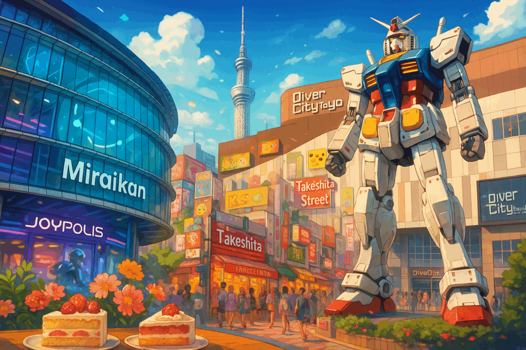 Il y a des journées qui ne ressemblent à aucune autre. Des journées où la ville change de visage, où tout semble plus fluide, plus lumineux, presque hors du temps. Odaiba, ce matin-là, nous tend les bras comme une promesse de science-fiction devenue réalité. Après l’agitation douce de Shinjuku, on embarque sur la Yamanote Line direction Shimbashi, avant de changer pour la ligne Yurikamome. Ce métro sans conducteur, perché au-dessus de l’eau et des routes, file dans les airs comme une capsule temporelle. On se met tous à l’avant. La baie de Tokyo s’ouvre sous nos pieds, le Rainbow Bridge s’étire en arc parfait.