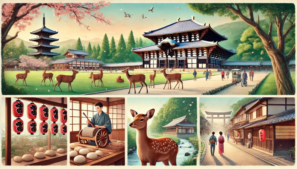 Ce matin, on quitte Kyoto de bonne heure pour une escapade dans le temps. Direction Nara, première capitale impériale du Japon, à moins d’une heure de train. Le trajet est paisible, les paysages deviennent de plus en plus verts, et une petite excitation monte. Aujourd’hui, on va croiser des cerfs en liberté. Autant dire que Tyler est déjà en mode safari.